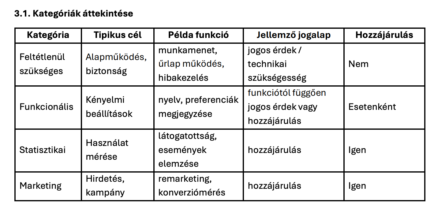 Ha a weboldal később marketing mérést vagy hirdetési integrációkat kap, akkor további sütik jelenhetnek meg. Ezek csak hozzájárulással aktiválódnak, és a tájékoztató kiegészítésre kerül.