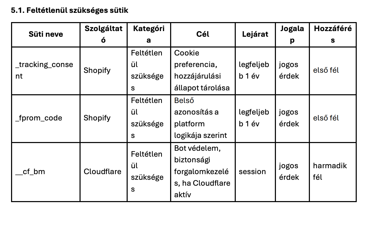 5.1. Feltétlenül szükséges sütik