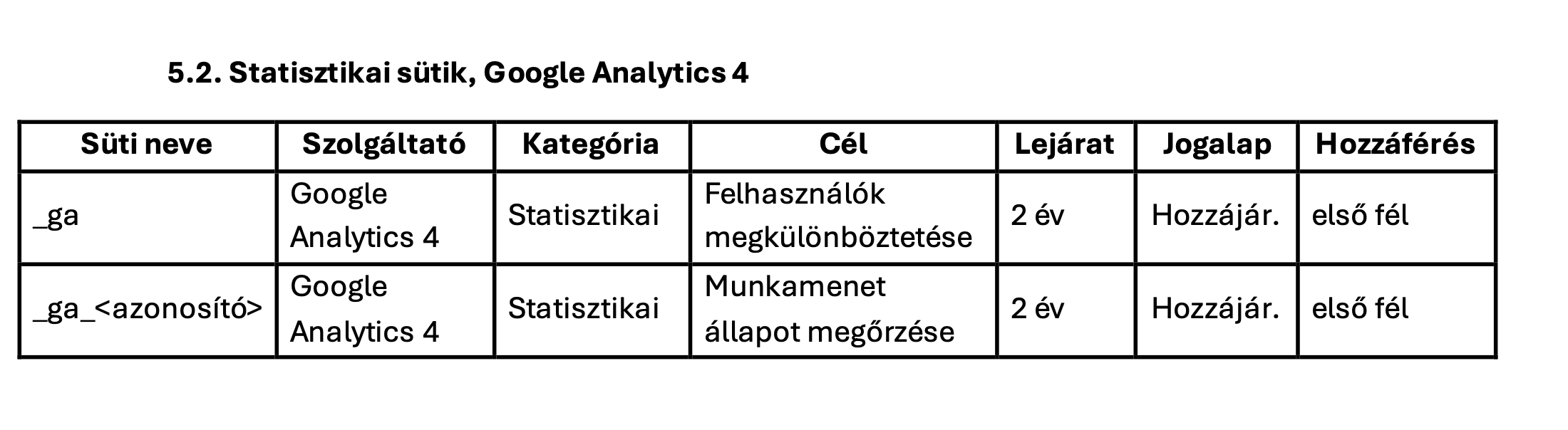 GA4 statisztikai sütik: a beállított lejárat szerint; tipikusan 2 év.