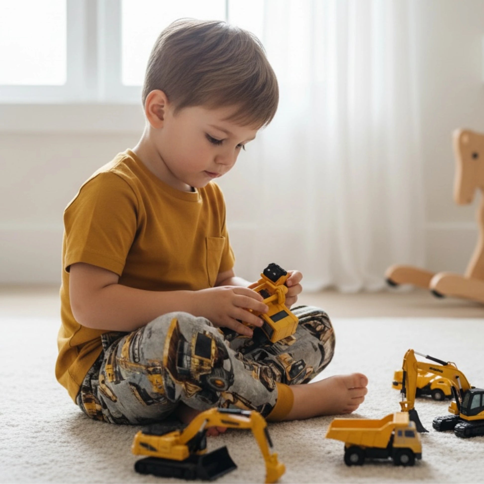🎨 Tökéletes Összhang: A passzé színe harmonizál a mintában lévő gépek sárgájával. Hordhatjátok a hozzá illő munkagépes pulcsival szettben, vagy egyszínű pólóval is.