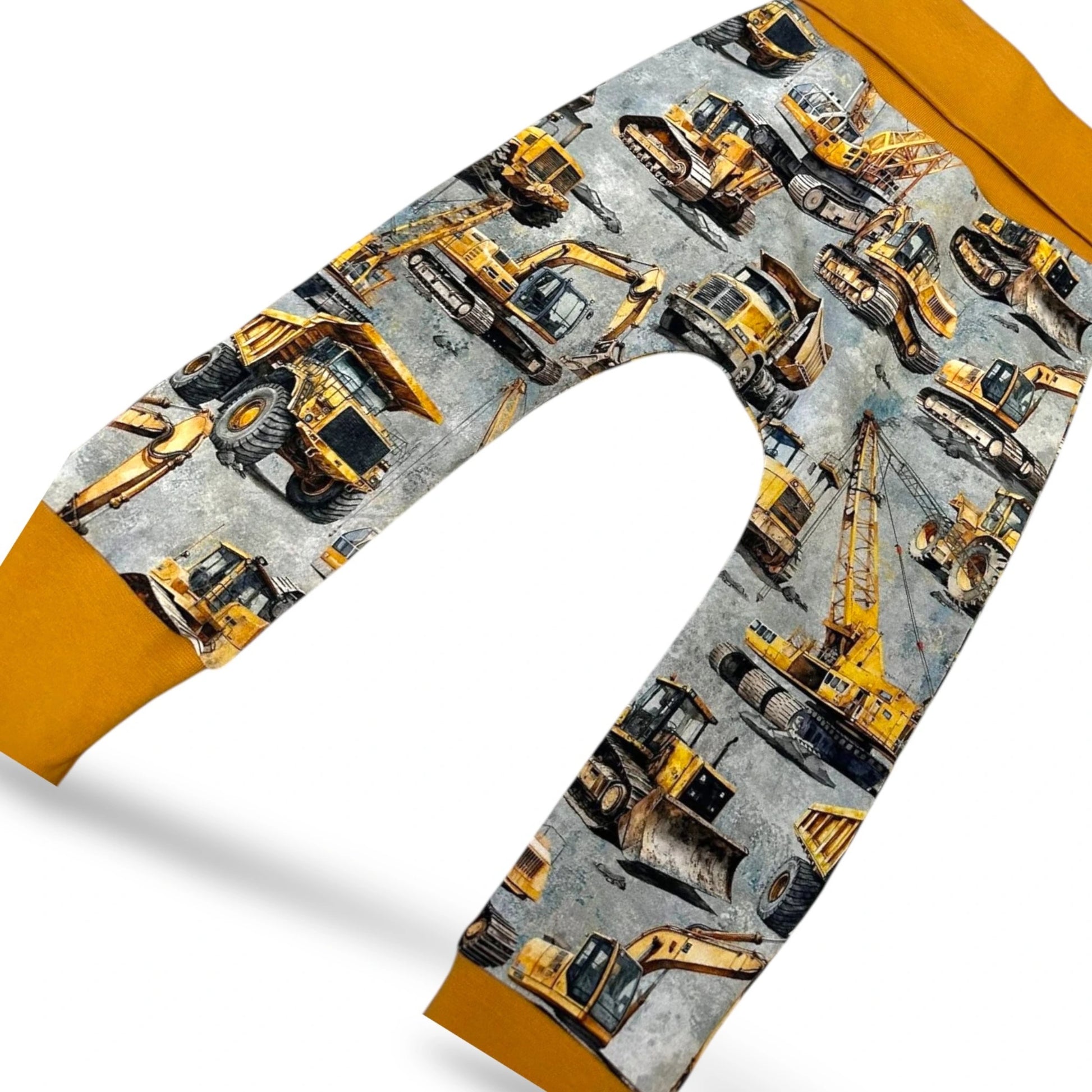 Ha már megvan a "Kis Építész" pulóver, ez a nadrág nem hiányozhat a gardróbból! A valósághű markolók és daruk mintáját a divatos mustársárga passzék emelik ki, ami nemcsak stílusos, de vidám hangulatot is ad az öltözéknek. A kényelmes, bővebb fazonban garantáltan nem szorít semmi építkezés közben.