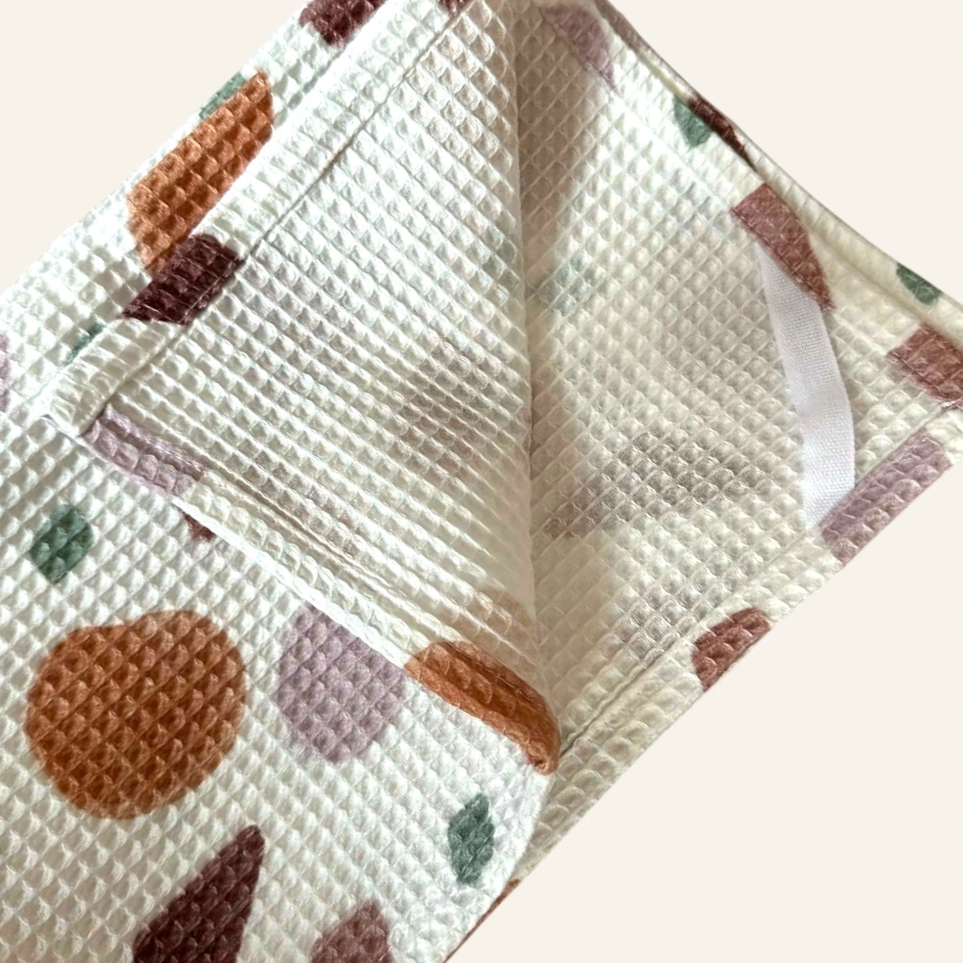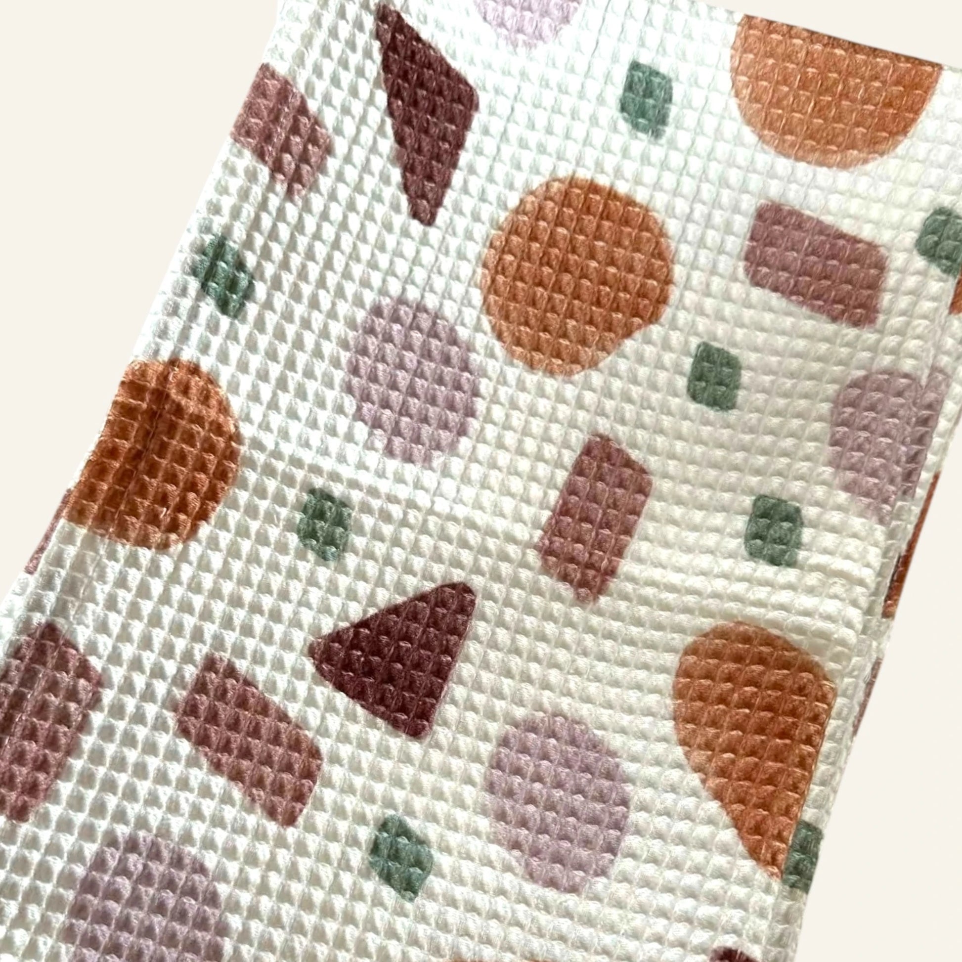 Hozz stílust a mosogatáshoz ezzel a különleges, földszínekben pompázó konyharuhával! A rozsdabarna, mályva és zöld geometrikus formák modern, "boho" hangulatot teremtenek, miközben a prémium darázs (gofri) anyag gondoskodik a tökéletes nedvszívásról.